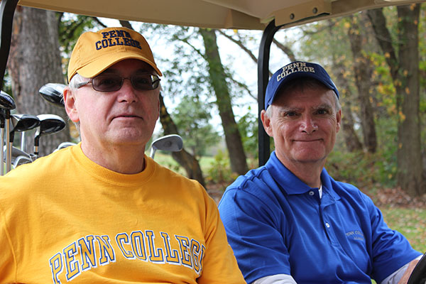 Brothers Mike (left) and Jim Cunningham show their Penn College allegiance.