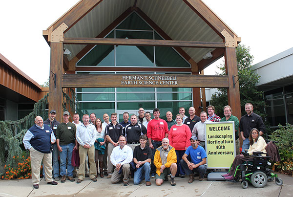Ryan K. Allar, a 2005 landscape/nursery technology graduate, details his background during introductions of an alumni panel at the ESC. As part of the anniversary celebration for the major, students were treated to industry advice in a lively discussion moderated by instructor Carl J. Bower Jr.