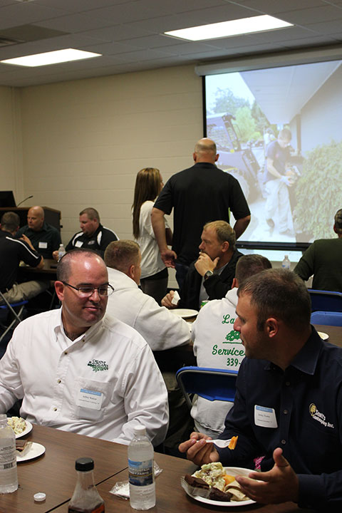Jeffrey N. Walizer, a 1993 landscape/nursery technology graduate, lunches with Jeremy L. Thorne, who earned two ornamental horticulture degrees in May.