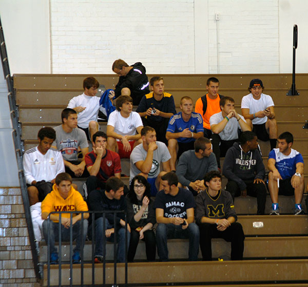 The pregame warmup for the men's soccer team includes some video-game downtime.