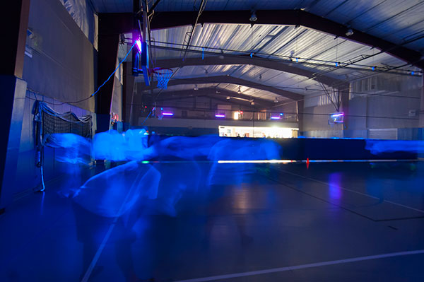 Photographer's artful camerawork captures the blur of black-light action.