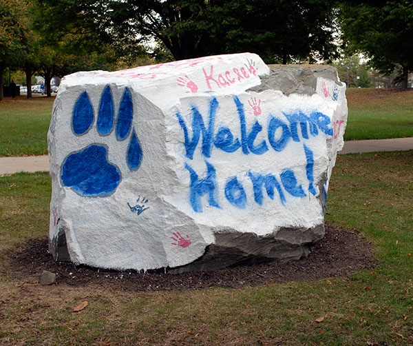 Returning alumni saw a welcoming message on the campus rock, thanks to the Residence Life Office.