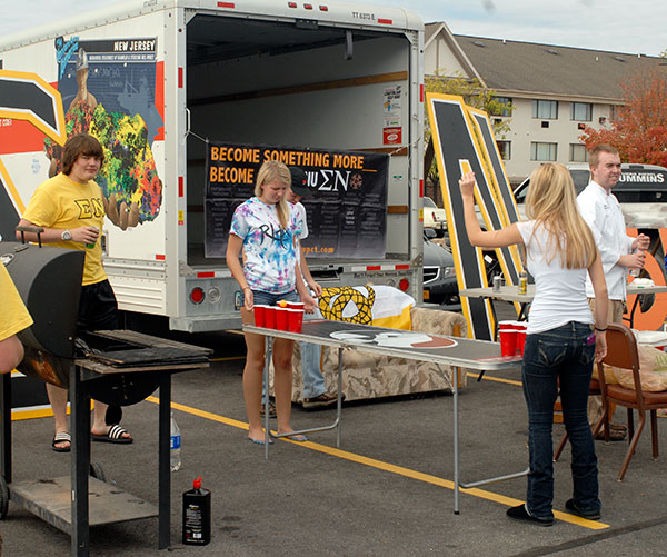 Phi Mu Delta joins in the tailgate fun, with a mix of games, tunes and food.