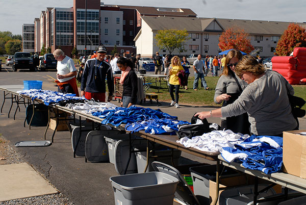 Bargain-hunters pore through jerseys and other sports apparel in a uniform sale behind the Field House.