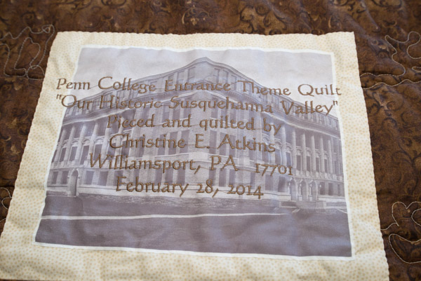 Mindful that the quilt show coincided with Penn College's 2014 Centennial, Atkins – whose personal history intersects with the institution's at several points along the timeline – chose a commemorative creation.