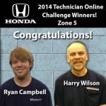 Ryan E. Campbell, a May 2013 graduate of Penn College's automotive technology: Honda PACT emphasis major, was a recent third-place winner in the Zone 5 Honda Professionals 2014 Technician Online Challenge. An employee of Keenan Honda in Doylestown, Campbell shared the spotlight with co-worker (and first-place winner) Harry Wilson. According to the dealership's e-newsletter, the pair competed against 118 others from that region in answering 87 highly technical service-based questions in the allotted time frame.