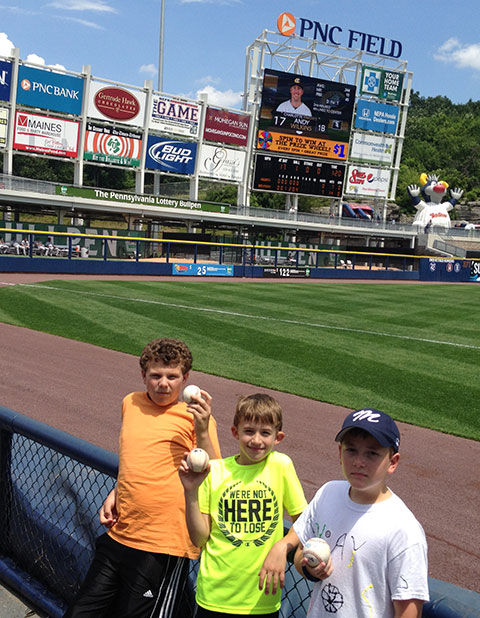 The weather was hot (and the game even hotter) as Camp ESCAPE traveled to PNC Park in Moosic for the afternoon half of a Wednesday doubleheader between the Scranton/Wilkes-Barre RailRiders and the Charlotte Knights. The RailRiders won the game, 7-2, and tallied more than 10 hits – which meant Red Robin coupons for the entire crowd. The restaurant's jingle, played over and over again, had campers eagerly yelling “Yummm” with every RailRider hit!Photos by Jeremy R. Bottorf, coordinator of intramural sports and campus recreation