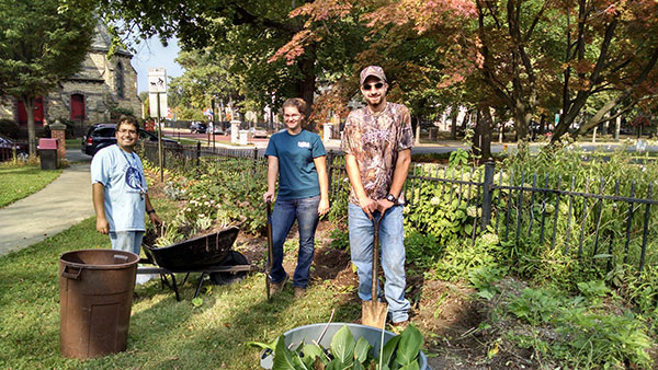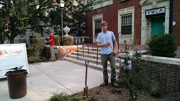 Several members of the Horticulture Club participated in a community service project on Sept. 30, removing some perennials from Way’s Garden – a community landmark at West Fourth and Maynard streets – and transplanting them around the nearby YWCA at 815 W. Fourth St. Way’s Garden has many hostas that they wanted to remove and YWCA officials were happy to receive them in their landscape. In addition, the Penn College students planted several other perennials and groundcover to help create a lower-maintenance landscape.Photos by Carl J. Bower Jr., horticulture instructor and club adviser