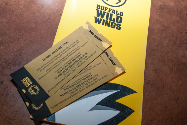 A recent Buffalo Wild Wings fundraiser co-sponsored by Penn College Benefiting THON and the Penn College Construction Association collected about $300 to be shared by the two student groups. Max Bower, secretary of the Off-Campus Housing Organization and organizer of the second annual event at the Loyalsock Township restaurant, this week got the final total from the Feb. 4 fundraiser, in which 10 percent of all pre-tax sales from ticket-carrying guests were split by the campus organizations. PCCA's share is $100, with the balance going to the college's THON chapter for the fight against pediatric cancer. This is the second year for Penn College's involvement in the 46-hour dance marathon, held at Penn State's Bryce Jordan Center to benefit the Four Diamonds Fund. Dancers in this year's THON, to be held Feb. 20-22, will be Sarah M. Luprek, of Berlin, enrolled in health arts: practical nursing emphasis, and Stephanie C. Myers, a culinary arts and systems major from Catawissa. Interested donors can visit the THON Web page, click “Donate Now” and select Penn College as their organization of choice.Photos by Elizabeth S. Greis, student photographer