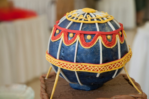 One of two impressive cakes – a whole-class project – graces the buffet table.