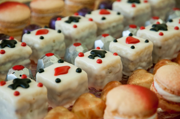 Bite-sized petit-fours play out the fun theme.