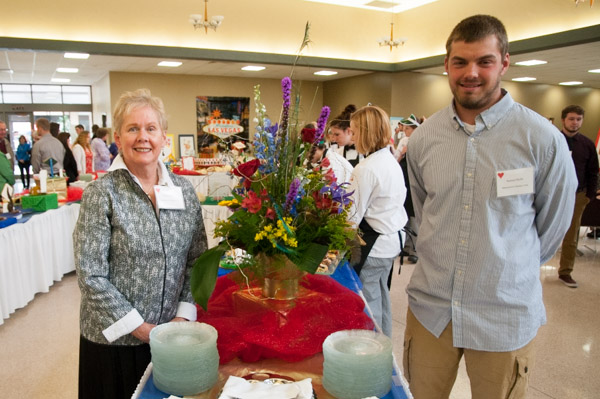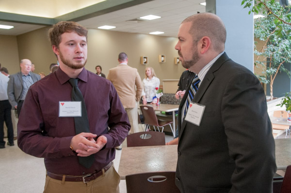 David T. Chavey, an automotive technology student from Hershey and the recipient of the Zachary C. Teter Memorial Automotive Scholarship, speaks with donor Brian Murray.