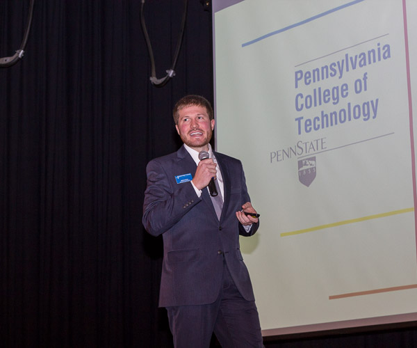 David R. Cotner, dean of industrial, computing and engineering technologies, delivers one of the six academic-school overviews taking place across campus.