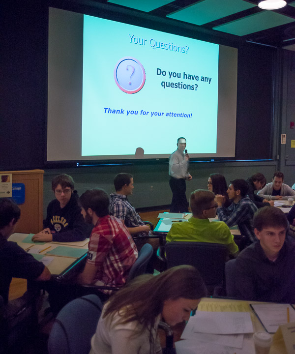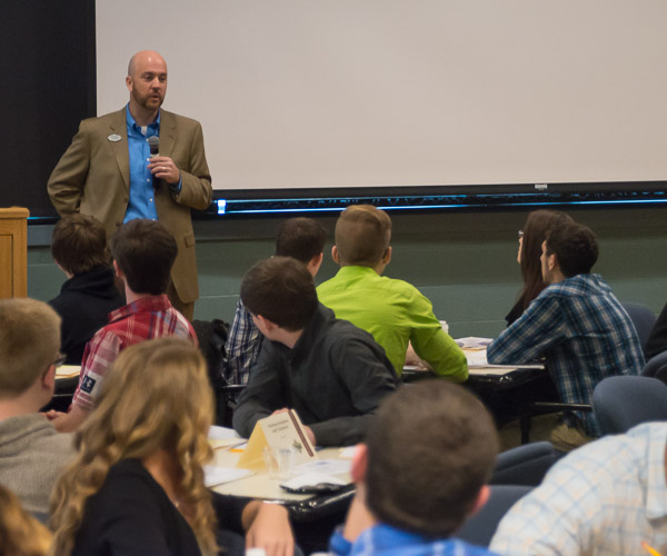 Students from area high schools fine-tuned their ambition and acumen on Friday in Penn’s Inn, where Penn College's School of Business & Hospitality partnered with EconomicsPennsylvania to present the Entrepreneurship Challenge. Working in teams, the enterprising students took their concepts from ideas to viable business plans. Instructing them in the steps to bringing their business models to life were Carolyn Shirk of EconomicsPennsylvania; Tim Keohane, of the Small Business Development Center at Lock Haven University; and Samuel Ryder, vice president/group manager at FNB Bank, and a member of the school's Business Administration Advisory Committee. EconomicsPennsylvania is a not-for-profit organization with a mission to ensure every young person in Pennsylvania understands essential economic and financial literacy concepts.