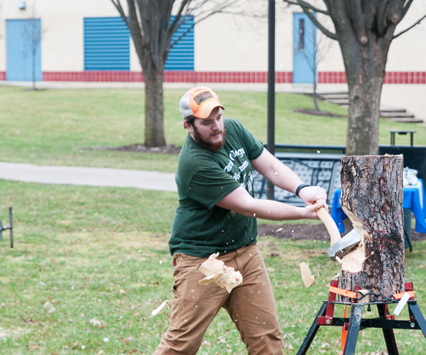 Members of the Penn College Woodsmen's Team put on a number of demonstrations outside the Bush Campus Center from noon-2 p.m. Tuesday, sharing their considerable skills with the college community and previewing next month's Timber Fest. Want to know more about the team or how to join? Email the Forestry Club! The team is always looking for new members, and students do not have to be enrolled in a related major to participate. The Timber Fest will be held from 8 a.m.-4 p.m. Saturday, April 9, at the Schneebeli Earth Science Center and will include a mid-Atlantic competition, displays of crafts and products made from Pennsylvania timber, and forest industry equipment and demos.Photos by Caleb G. Schirmer, student photographer
