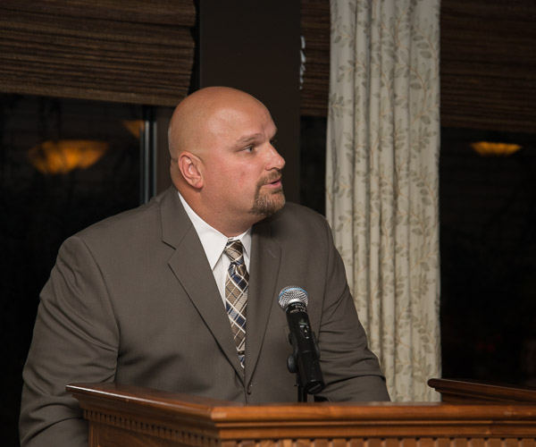 President Gilmour addresses the Athletic Hall of Fame crowd in Le Jeune Chef.