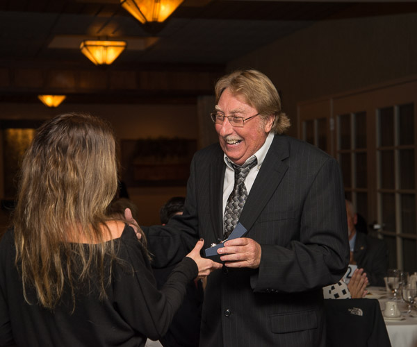 Gene Bruno, former head coach of men’s basketball who delivered two humorous and inspiring introductions for Flint and Solyak, also acknowledged crucial support from his wife, Tracy, with whom he enjoyed the Hall of Fame festivities.