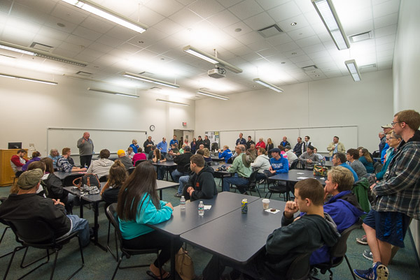 Torrential rains didn’t stop a crowd of family members heading to the Breuder Advanced Technology & Health Sciences Center for a tour.