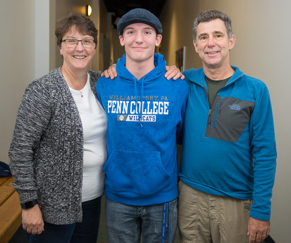 David A. Pfahler, a freshman in plastics and polymer engineering technology, enjoys time with his parents who traveled to campus from Telford.