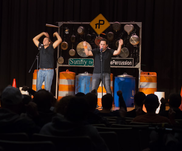 During their performance, moved into the Klump Academic Center Auditorium from the carnival midway, rePercussion enlists a young helper ...