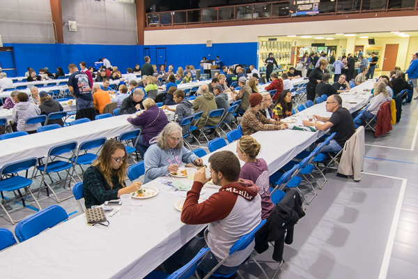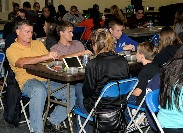 Filling a table unto itself is the Caler family, back for its second year of bingo fun. Son Noah T. (in blue) is a business management major.
