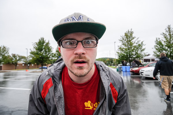 Phi Mu Delta President Ian G. Bubb, a plastics and polymer engineering technology major, stares down a photographer at the car show.