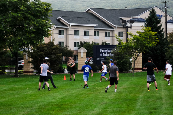 On hand for Ultimate Frisbee are Joshua L. Blank (left), a 2015 graduate in information technology: information assurance and security concentration, and Patrick J. Maeulen, enrolled in information assurance and cyber security.