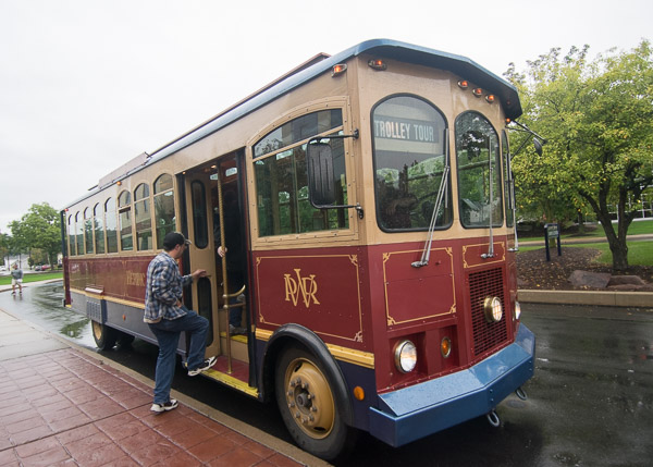 Some visitors used the River Valley Transit trolley to get around campus (and the community) while others braved the soggy slog on foot.