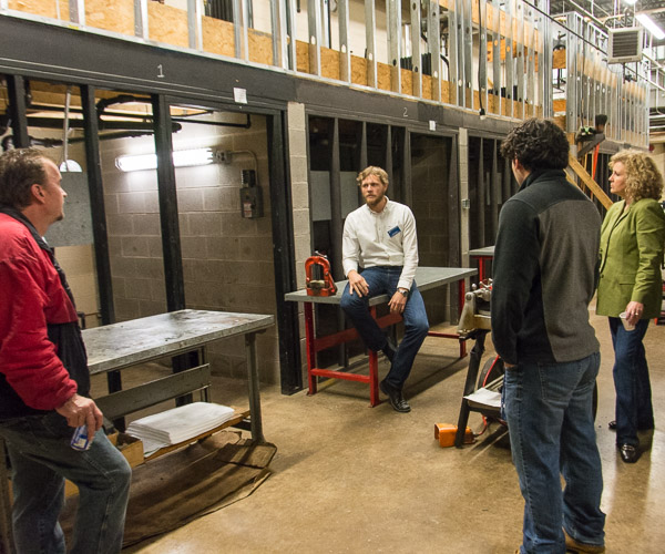 Daniel J. Harris, instructor of HVAC technology, shows a family around a lab, describing what their son will learn over the next several semesters.