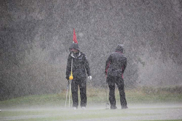 Determined to finish out the hole, these women persevered in near-horizontal rain at White Deer Golf Course.