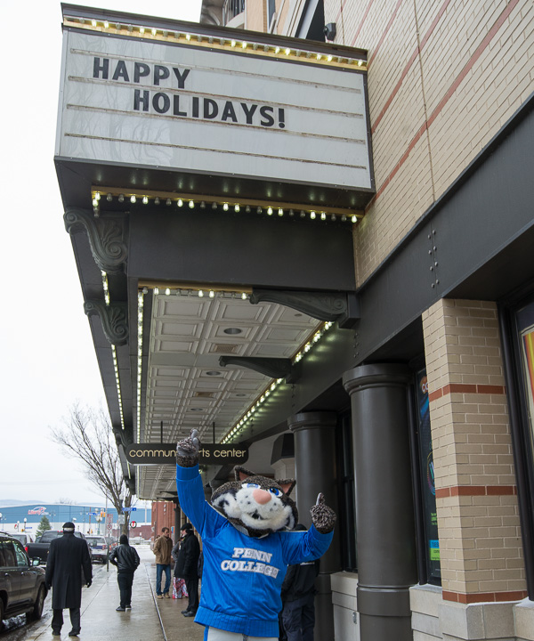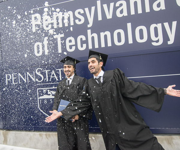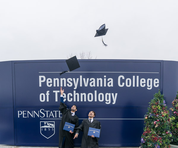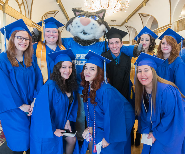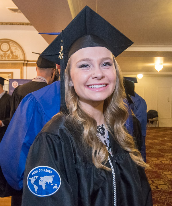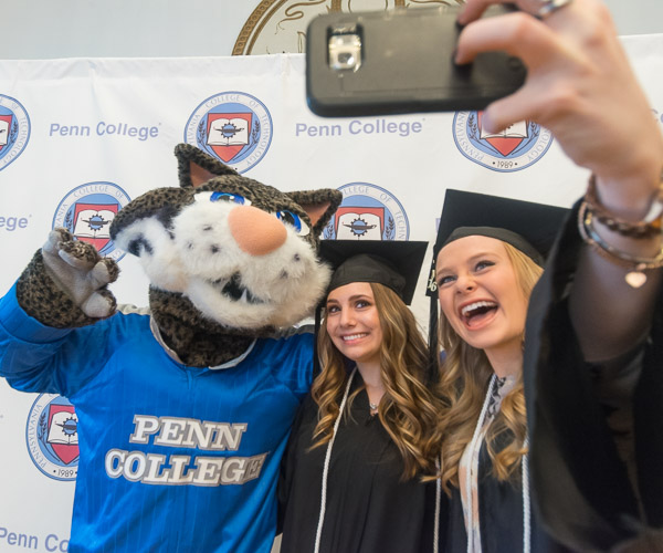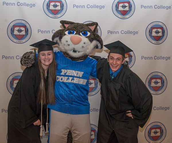During pre-commencement at The Genetti, the Wildcat pals around with Brittney D. McHugh, of Frederick, Md., and Nathan D. Strouse, of Spring Mills. Both received bachelor degrees in applied management to add to their associate degrees in baking and pastry arts earned in 2015.