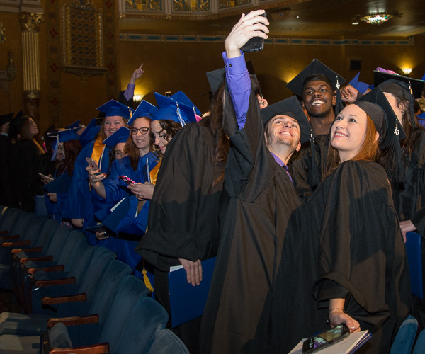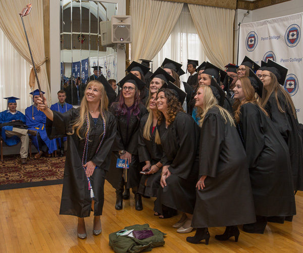 Armed with a selfie stick and smile, Alicia A. Brant, a nursing graduate from Mifflinburg, gathers a glorious group.