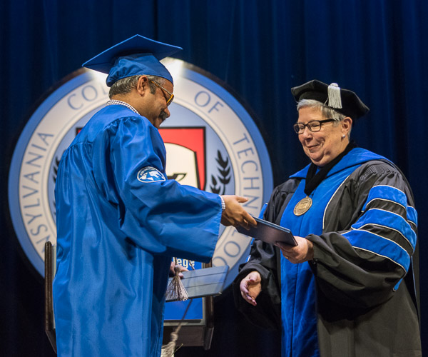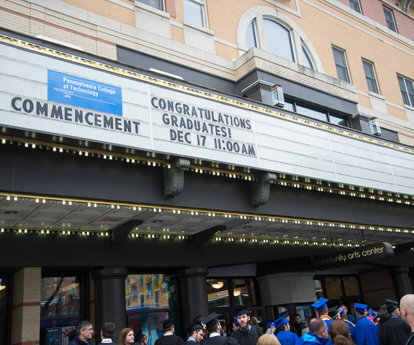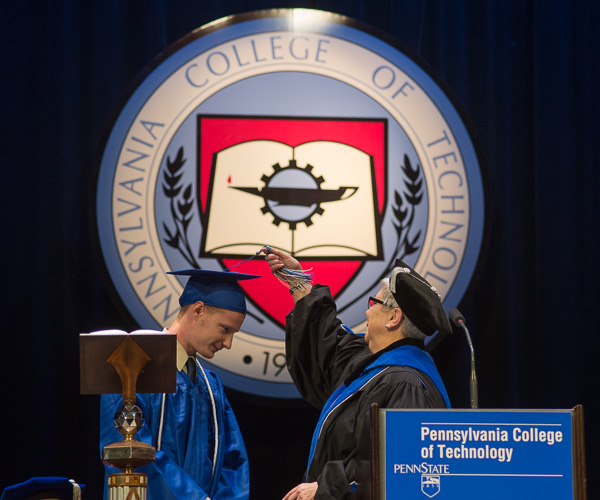 Grads follow along with lyrics exulting their "proud Penn College days."