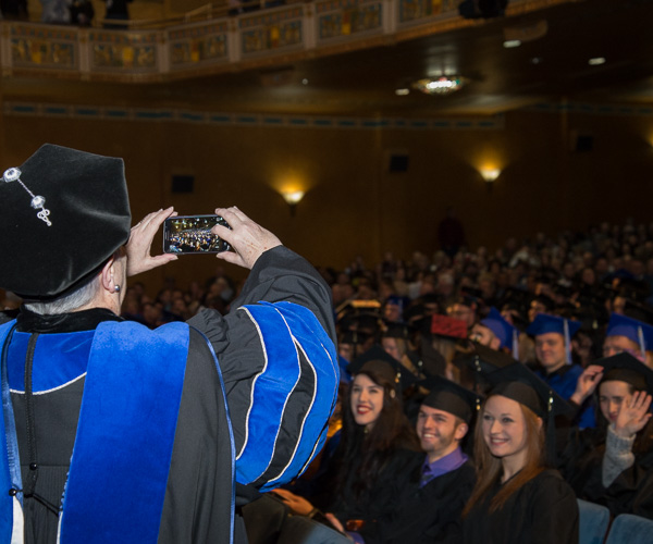 The president proudly takes to the podium for the culmination of the Fall 2016 semester.