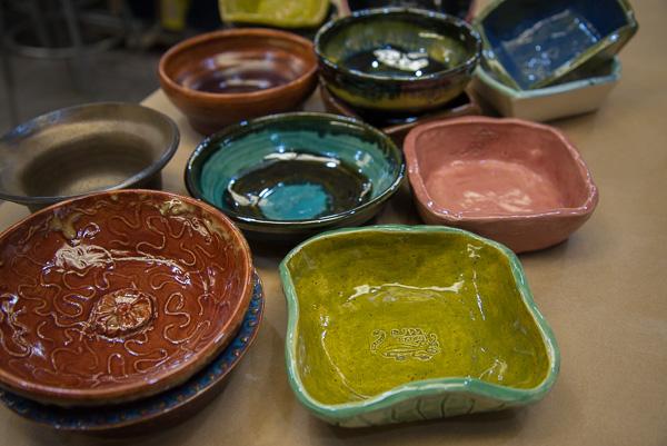 More than 120 soup bowls, crafted by Penn College students, have been donated to the Williamsport Soup & a Bowl event, benefiting the Central Pennsylvania Food Bank. This is the fifth year the college’s creative hands have added warmth and functionality to this community effort. Set for Friday, Feb. 17, the 11th annual fundraiser will be held at The Genetti Hotel and Suites in downtown Williamsport. With a Mardi Gras theme, the gathering features three seatings (11 a.m., 12:30 p.m. and 4 p.m.) in addition to a takeout option. Reservations are advised. The bowls being donated by Penn College were created during the 2016 spring and fall semesters by students in Ceramics I classes, a popular elective. The classes are taught by husband-and-wife duo David A. and Deborah L. Stabley, members of the college’s art faculty. The Stableys also manage the Factory Works Clay Studio in Williamsport’s Pajama Factory, and members of that studio created an additional 50 bowls for the Soup & a Bowl event.