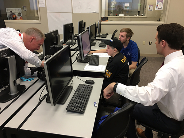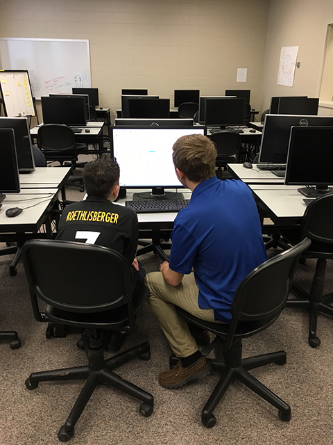 Temoshenko and Mitchell get down to business in the college’s gaming and simulation lab.