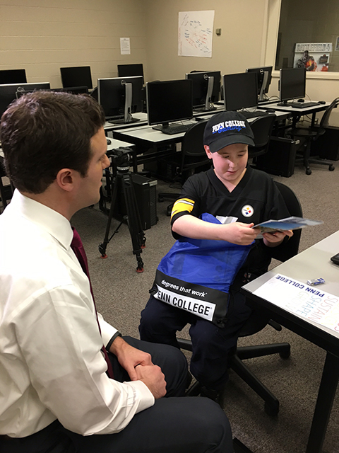Mitchell is obviously pleased with his bag of Penn College goodies.