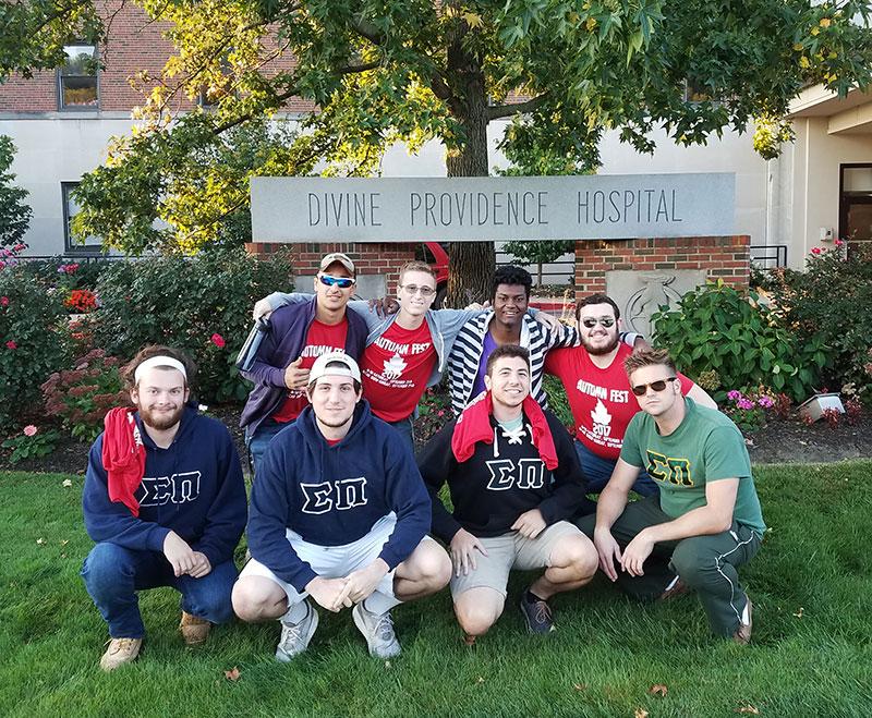 Sigma Pi fraternity volunteered at Divine Providence Hospital's AutumnFest 5K over the weekend. "We heard about the event through Penn College, and we chose to participate because it was for the local community," said Jeffrey R. Hasiak, a member of the Theta-Phi chapter's executive board. "We assisted in guiding the runners, as well as encouraging them as each of them were crossing the finish line. It was a fantastic event to help at, and we all plan on assisting the next time it comes up."