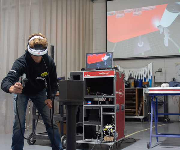 A Johnsonburg Area High School student tries his hand at the paint simulator in the collision repair and restoration lab. The simulator allows students to see areas where paint was applied too generously or too sparingly, allowing the students to continue practicing and gaining confidence before stepping into one of the college’s three “real” paint booths.