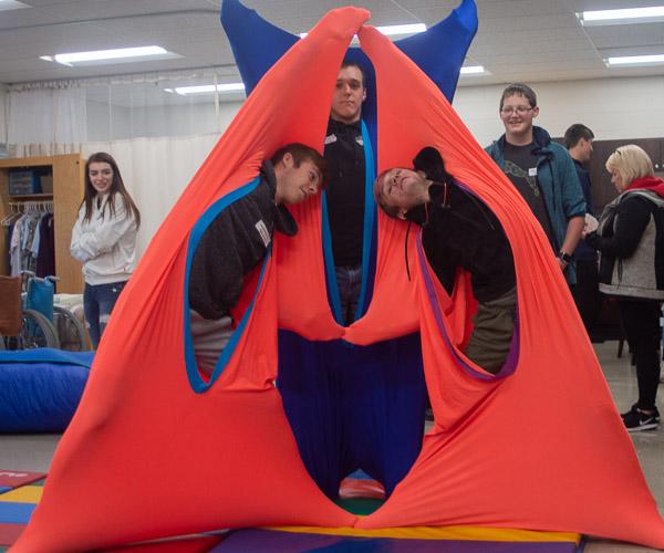 Students from North Penn-Mansfield High School have fun with therapy tools in the occupational therapy assistant lab.