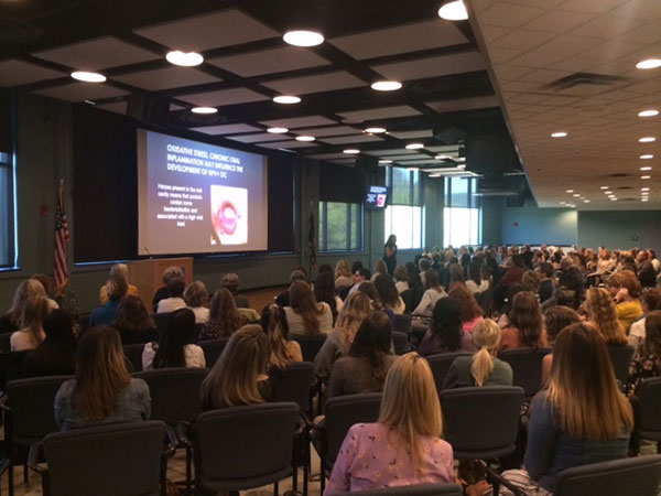 Penn College’s dental hygiene program joined forces with the North Central Pennsylvania Area Health Education Center to co-sponsor a dental continuing education program. Held Sept. 20 in Penn’s Inn, the program featured presentations on HPV by Dr. Lynn Williams, who discussed “HPV and Prevention,” and Registered Dental Hygienist Debbie Zafiropoulos, who covered “How to Screen for Oral Cancers.” The well-attended event attracted about 140 dental professionals.Photo provided