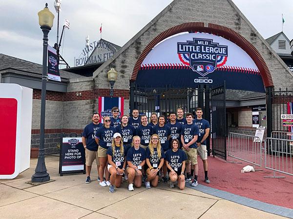 Fifteen Pennsylvania College of Technology business students learned about marketing efforts behind televised athletics events when they were hired by a marketing firm to help distribute noisemakers at the third MLB Little League Classic, played at historic Bowman Field at BB&T Ballpark, just a few blocks from campus.