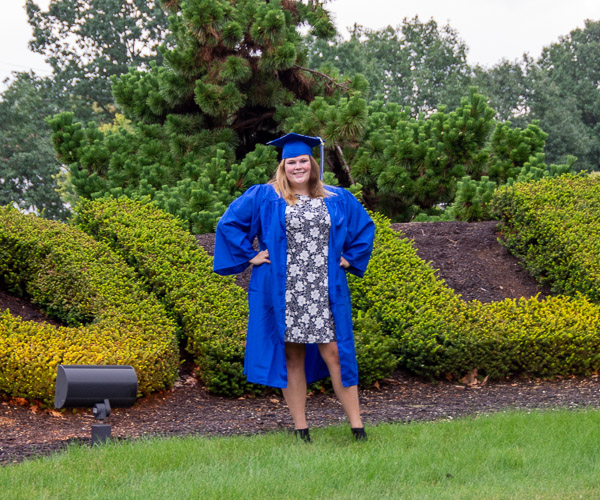 New alumni were directed to a number of photo backdrops on campus – including the "Penn College" shrubbery near the main entrance, where health information technology graduate Ashlie N. Rodgers paused to pose.