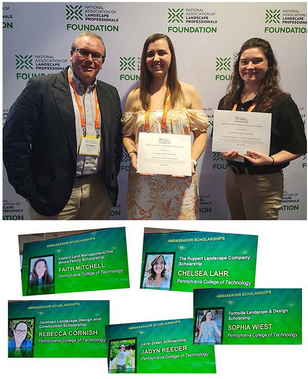 As part of the three-day event, five Penn College students (two of whom were in attendance) shared scholarships totaling $6,500 from the National Association of Landscape Professionals Foundation.