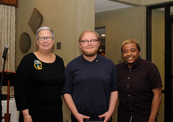 She affixed a lapel pin to each of the award winners, then posed for photos with the students and their presenters. Those sponsors were specially invited by the honorees, indicative of the mutual admiration between students and their faculty/staff mentors and supportive peers.