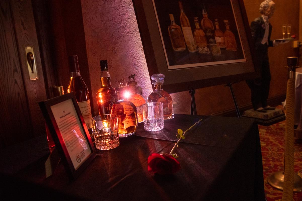 In a corner of the mezzanine, bourbon tastings are presented by Caleb J. Stemler (left), Le Jeune Chef waitstaff, and Kimberly A. Bressler, CAC bartender/concessionaire. Stemler is an applied management student who holds a degree in baking & pastry arts.