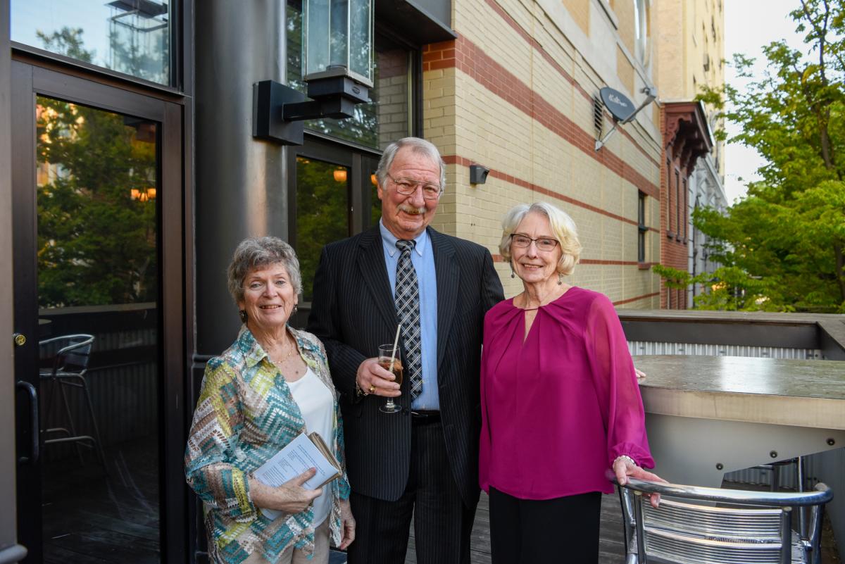 Yaw poses with Penn College presidents past and present: Davie Jane Gilmour and Michael J. Reed.
