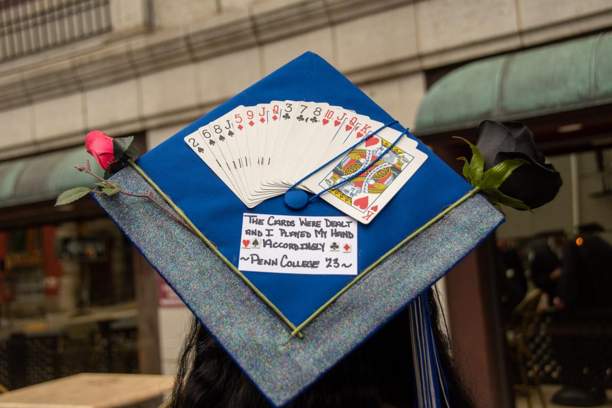 Lauryn A. Stauffer's cap reveals the secret to her campus leadership, as well as her completion of a four-year degree in automation engineering technology: robotics & automation.