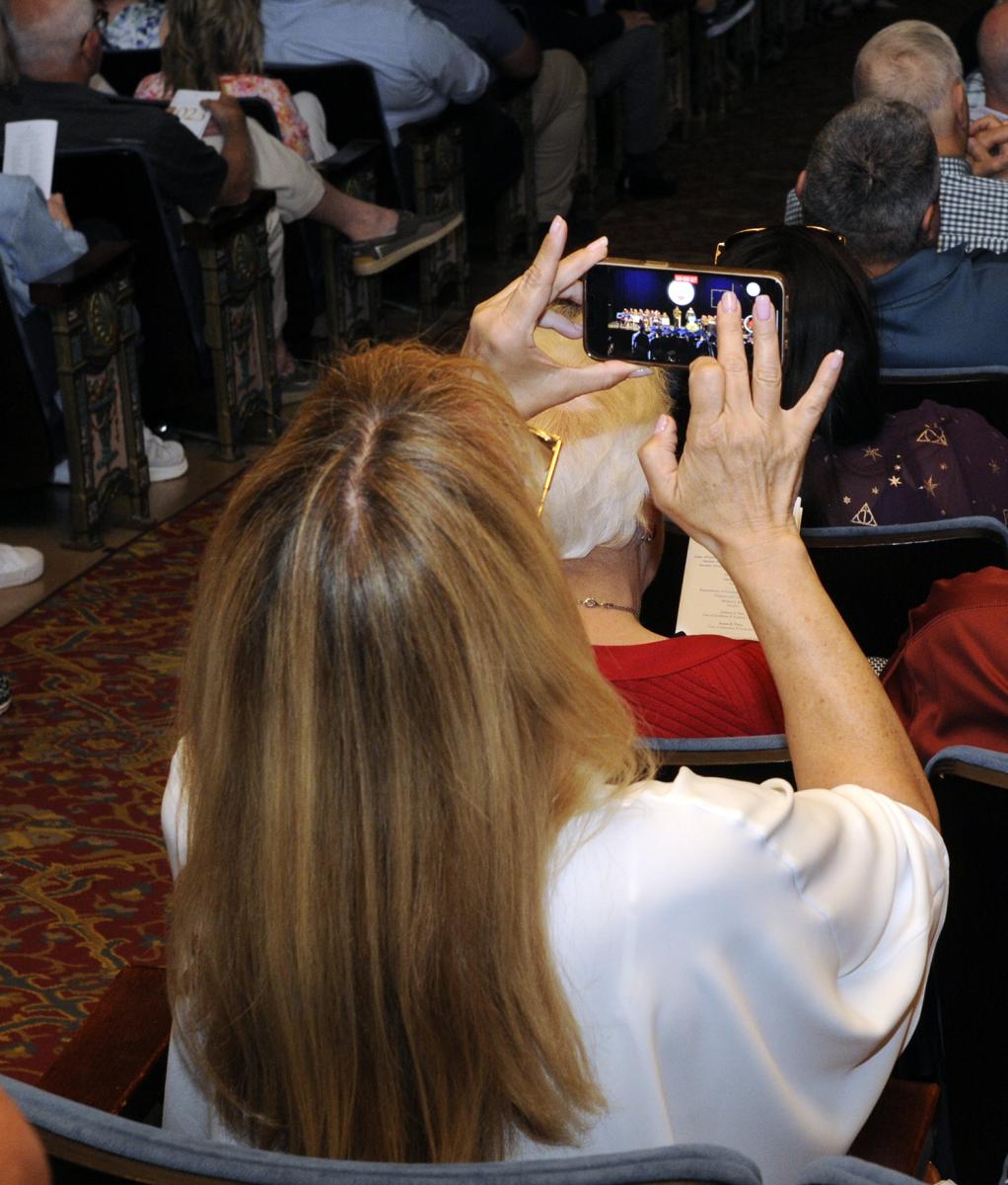 The crowd shares a somber moment, as a posthumous degree is presented to the father of Jared M. Kiess. Kiess died in March, just shy of attaining his bachelor's in welding & fabrication engineering technology.