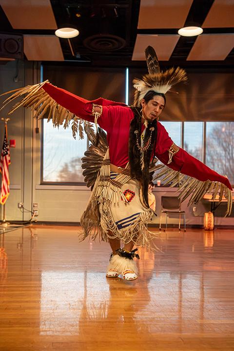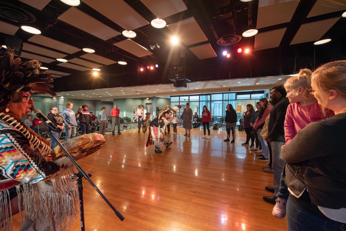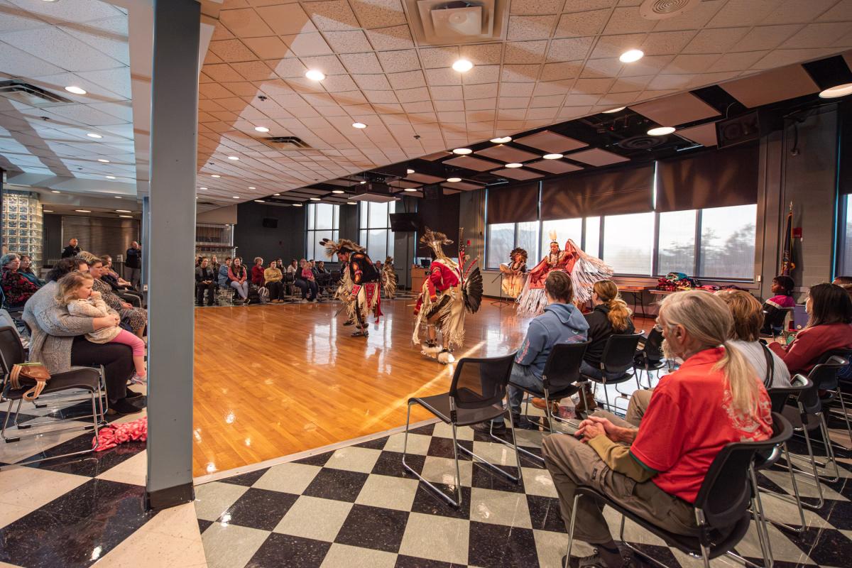 The Piscataway Nation Singers & Dancers, who carry on the long-standing traditions and culture of their Indigenous ancestors, traveled to Penn College for a Thursday performance in Penn's Inn.